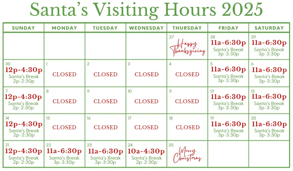The Santa Claus experience is brought to you by Personally Yours, a locally owned boutique! You can check them out on Facebook here: https://www.facebook.com/personalizedforyour